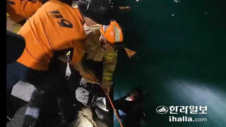 서귀포시 성산읍에서 1t 트럭이 바다에 추락해 탑승자 2명이 심정지 상태로 구조됐다. 제주도 소방안전본부 제공