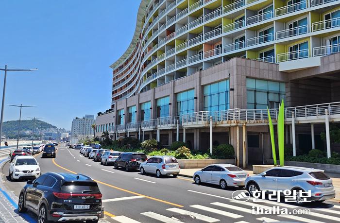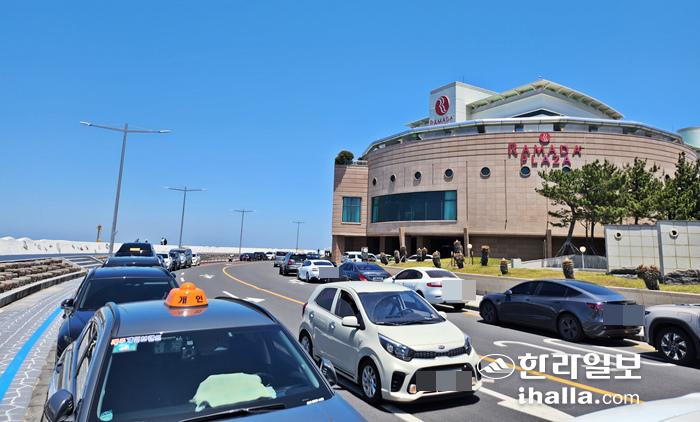 지난 주말 제주시 탑동해안로 불법 주차 현장.