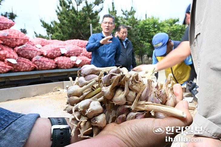 이현식(69·대정읍 일과2리)씨는 "예년에는 3.3㎡당 5~6㎏은 수확했는데, 올해는 4㎏도 안될 것 같다. 상품 비율은 20% 남짓, 벌마늘은 40%쯤 된다. 임차료를 포함한 경영비가 3.3㎡당 1만6000원이 넘을 듯 싶은데, 아무리 계산해 봐도 마이너스다. 마늘 농사를 접고 양파나 다른 품목으로 전환해야 할지…"라고 했다.