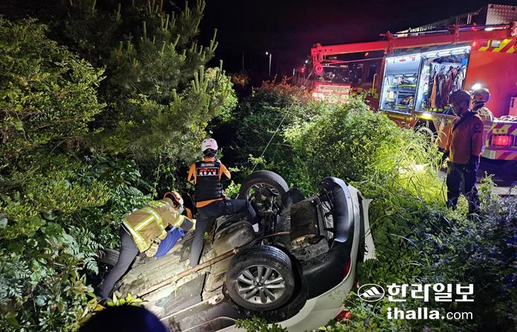 서귀포시 성산읍 온평리 사고 차량. 제주도 소방안전본부 제공
