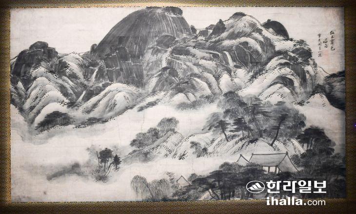 '어느 수집가의 초대-고 이건희 회장 기증 국립제주박물관 특별전' 2부 전시공간에서 만나볼 수 있는 정선의 '인왕제색도'(국보). '인왕제색도'는 6월 한 달 간만 감상할 수 있다. 이상국기자