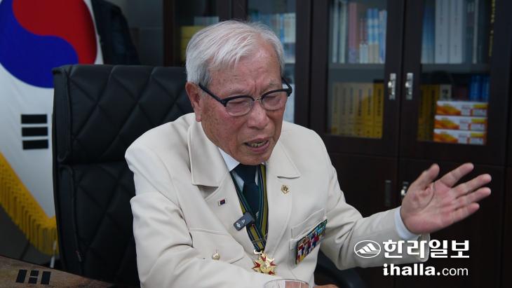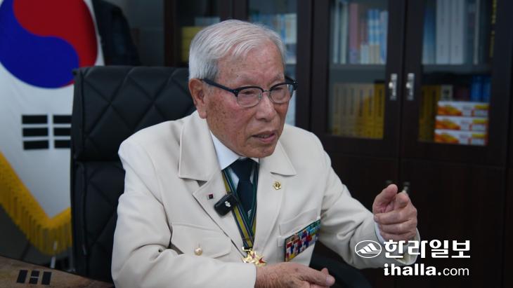 2018년부터 대한민국6·25참전유공자회 제주특별자치도지부장을 맡고 있는 송치선 씨는 "참전용사 한 명 한 명이 대한민국의 역사임은 틀림없다"고 강조했다. 사진=신비비안나 기자