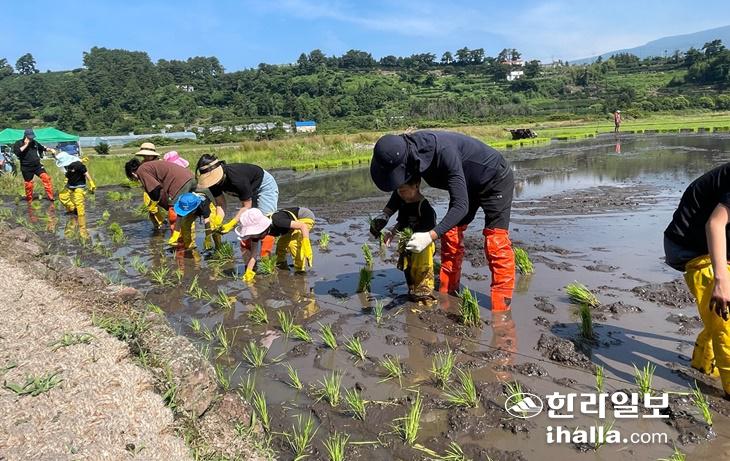 서귀포시 서홍동주민자치위원회의 하논 모내기 체험. 서홍동 제공