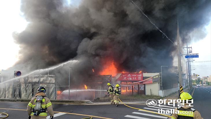 서귀포시 동홍동 가건물 화재 현장. 제주도 소방안전본부 제공