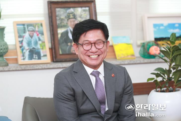 [한라일보] 제12대 제주특별자치도의회 전반기를 이끈 김경학 의장이 임기 2년간의 소회를 묻는 질문에 "가장 아쉬웠던 것은 민생 경제 회복"이라고 말했다. 앞으로의 정치 행보에 대해선 "(도의원 임기를 남겨둔) 지금 시점에선 구체적으로 언급하는 게 적절하지 않다"면서도 "정치적 공간이든 비정치적 공간이든, 그동안 받은 사랑을 도민사회에 돌려주기 위한 역할을 해 나가겠다"고 했다.