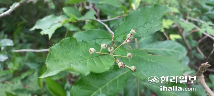 부소오름의 국유임도는 정비가 잘 돼 있었고, 길가에는 한창 꽃을 피운 때죽나무와 비목이 살랑이며 우리를 반겼다. 또한 잎새 밑에 박쥐처럼 매달려 꽃을 피운 박쥐나무가 수줍게 인사한다. '새몰매'라는 아름다운 지명을 겸비한 부소오름은 바로 북쪽에 붙어있는 부대오름과 대비돼 불려진 형제지간의 오름이다. 새몰매는 새끼말들을 길들이는 산이라는 점에서 이 일대가 예로부터 목축의 중심지였음을 알 수 있다.