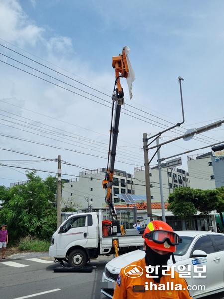 신호등 보수작업을 하던 근로자 추락. 제주도소방안전본부 제공