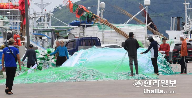 23일 제주시 한림항에서 어민들이 그물을 정리하며 출항 준비로 분주한 하루를 보내고 있다. 이상국기자