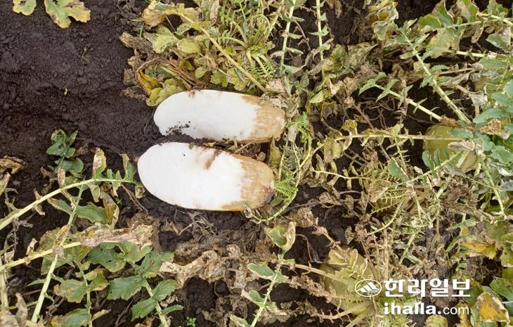 겨울철 대설·한파로 인한 월동무 피해 모습. 서귀포시 제공