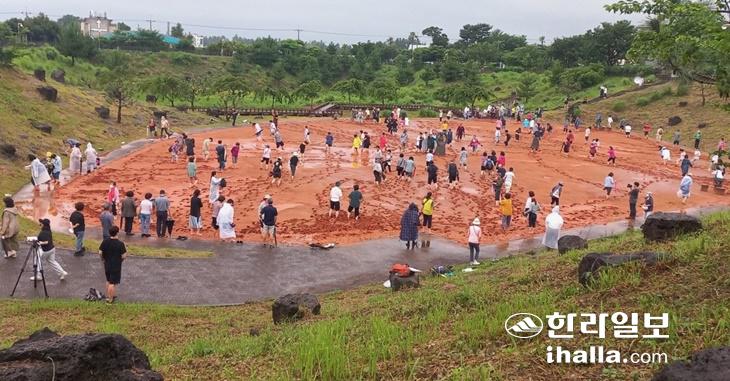 서귀포시 혁신도시 숨골공원 내 황토 어싱 광장. 서귀포시 제공