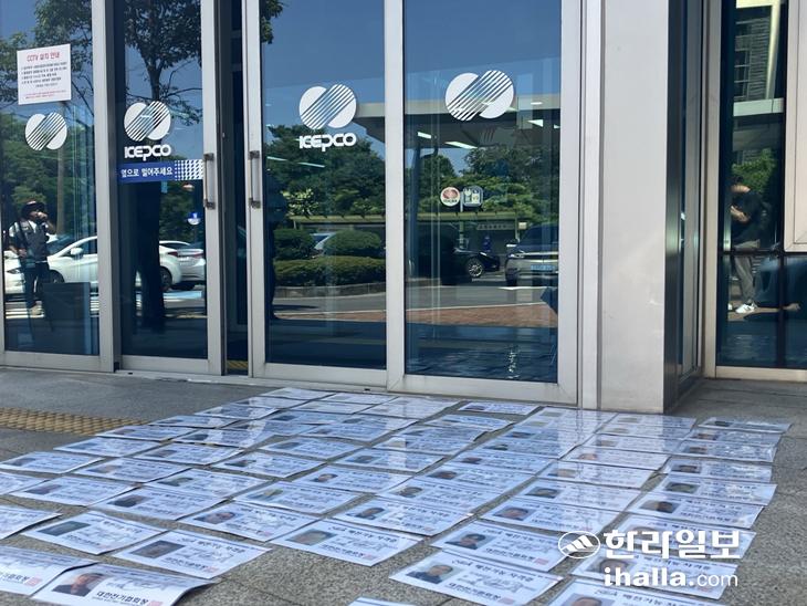 제주배전노동자들이 반납한 '배전기능 자격증'.