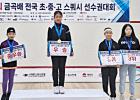 구보민(보성초6, 왼쪽에서 세 번째) 지난 7일 경북 김천 스쿼시경기장에서 열린 제24회 회장배 전한국스쿼시선수권대회에서 우승을 차지하며 대회 2연패와 함께 시즌 4관왕에 올랐다.