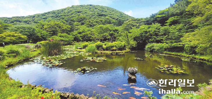 절물오름 못, 오름의 사면에서 흘러드는 강수와 샘물이 고여 못을 이뤘다. 산악인 강연심 제공