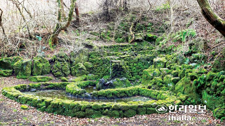 절물오름 샘, 계절에 따라 용출량에 차이가 있으나 연중 끊임없이 솟는다. 김찬수
