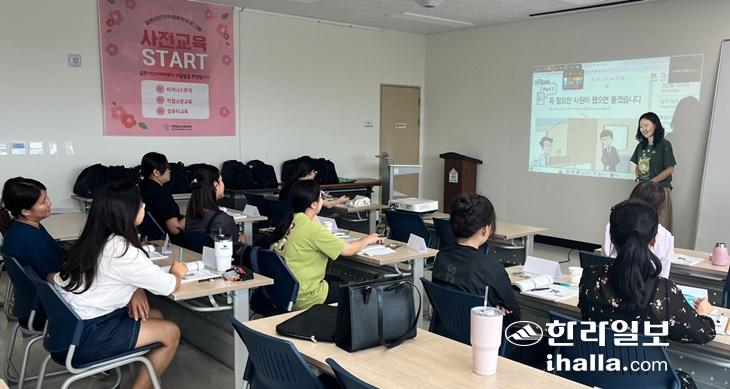 서귀포시가 바리스타 자격증 취득을 위한 직업 훈련 참가자를 대상으로 사전 교육을 진행하고 있다. 서귀포시 제공