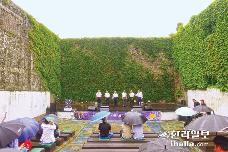 [한라일보] 지난 7일 오후 서귀포시 이중섭거리의 옛 서귀포관광극장. 보슬보슬 장맛비가 내리는 날이었지만 예정대로 '작가의 산책길' 정기 공연이 진행되고 있었다. 생활예술단체인 '우리음악회' 출연진들은 기꺼이 비를 맞았고 객석에 앉은 이들은 자리를 뜨지 않고 우산을 펴든 채 귀에 익은 노래들을 즐겼다. 독창, 중창, 클라리넷과 기타 연주 등이 잇따랐고 마지막 순서엔 합창이 퍼졌다. 청중들과 함께 부르는 '서귀포를 아시나요'를 끝으로 1시간에 걸친 공연은 막을 내렸다.