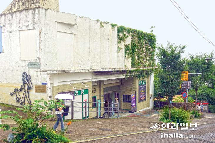 지붕 없는 폐건물이라는 서귀포관광극장의 약점은 오히려 그만의 개성이 되었다. 이맘때가 되면 무대 뒤편 벽면을 온통 초록으로 뒤덮는 담쟁이는 마치 거대한 설치 작품처럼 다가온다. 서귀포관광극장은 어느덧 이중섭거리의 명소가 되었다.
