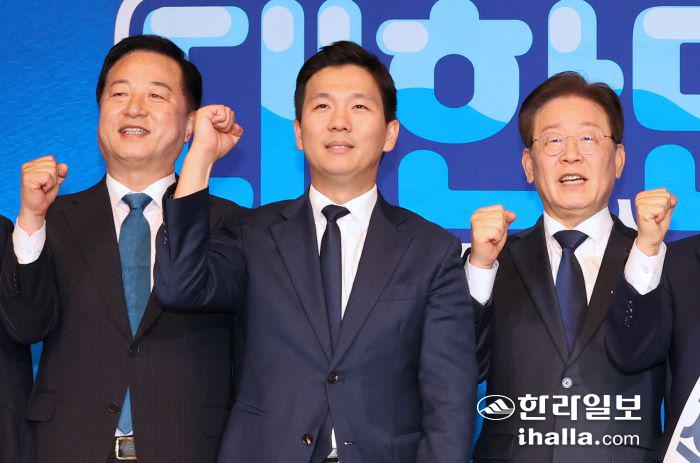 더불어민주당 전당대회 대표최고위원 본경선에 오른 김두관·김지수·이재명 대표 후보. 연합뉴스