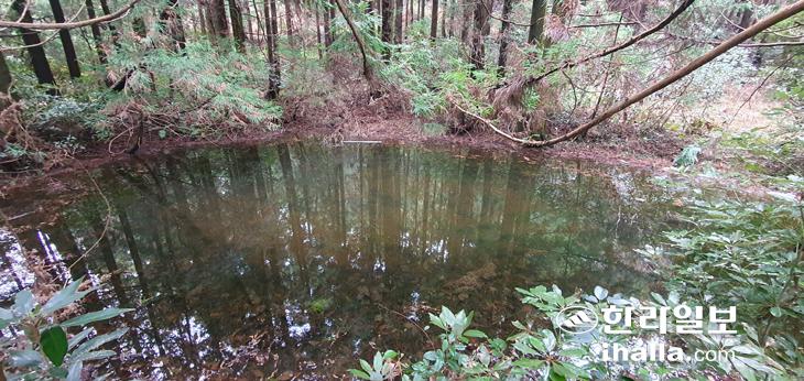 설오름 동측 자락에 있는 물웅덩이, 이곳에는 연중 이런 웅덩이들을 볼 수 있다. 김찬수