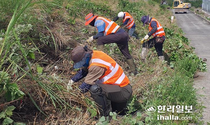중산간서로 덩굴 제거 작업. 제주시 제공