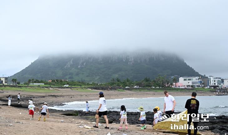[한라일보] 16일 오전 서귀포시 안덕면 산방산 위로 구름이 내려앉아 마치 모자를 쓴 것처럼 신비로운 풍경을 연출하고 있다. 강희만기자