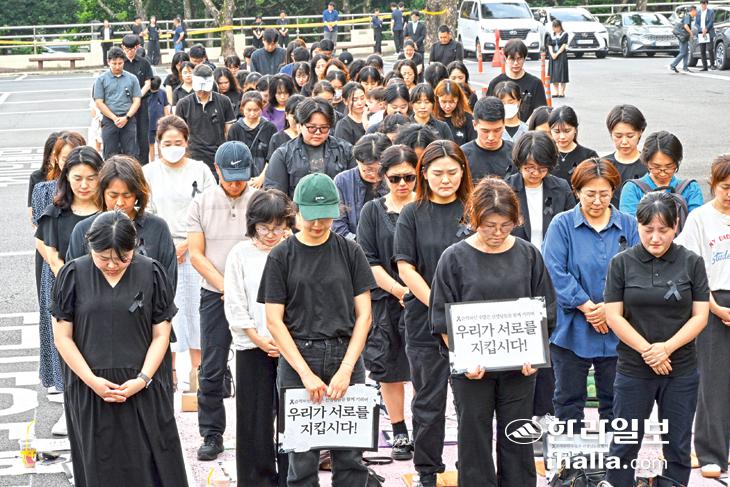 [한라일보] 18일 서이초 순직 교사 1주기를 맞아 '순직교사 1주기 제주추모문화제'가 열렸다. 추모 문화제는 전국교직원노동조합제주지부, 제주특별자치도교원단체총연합회, 제주좋은교사운동, 새로운학교제주네트워크, 제주실천교육교사모임이 주최했다. 강희만기자