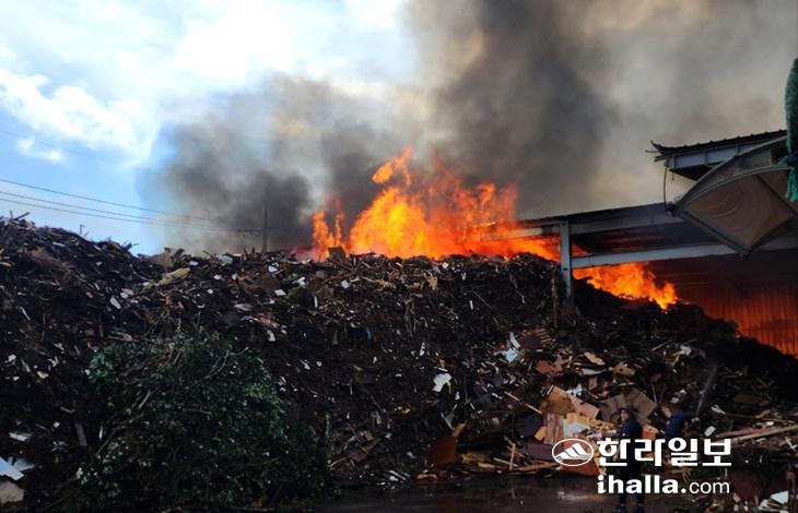 토평공업단지 야적장 화재. 제주도 소방안전본부 제공