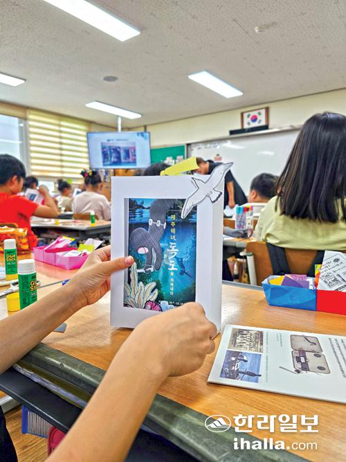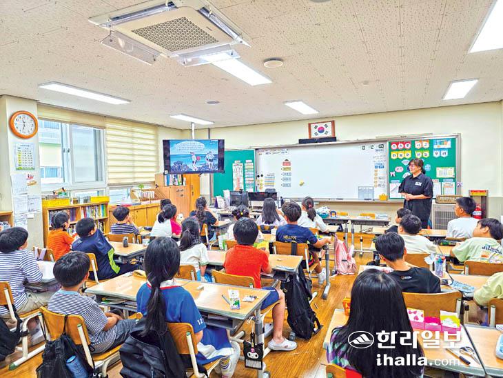 지난 19일 제주시 백록초등학교 4학년 3반에서 한라일보와 제주특별자치도가 함께하는 '2024 찾아가는 독도 해녀교실'의 첫 수업이 진행됐다. 오은지기자