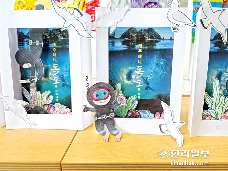 '찾아가는 독도 해녀교실'에서 백록초 어린이들이 독도 해녀 관련 팝업 체험활동을 통해 완성한 작품.