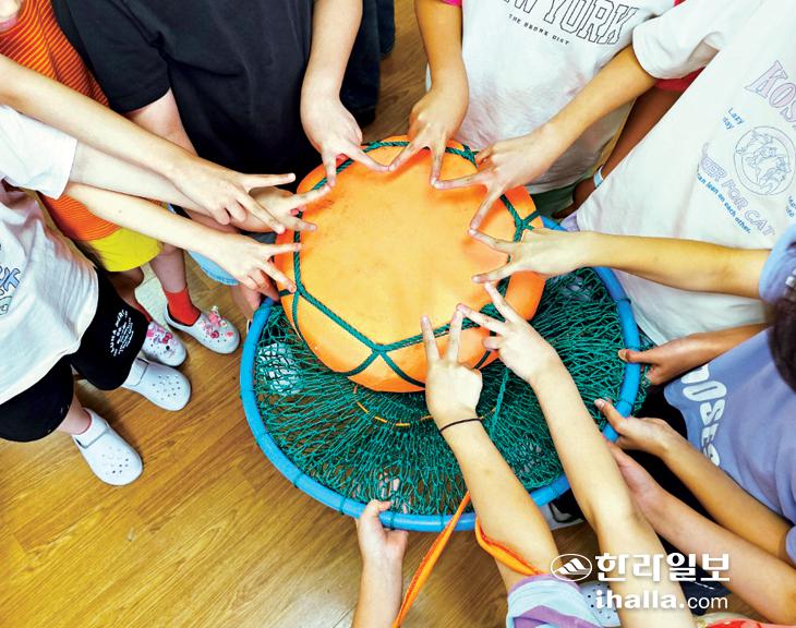 강사의 설명이 끝난 후 아이들은 테왁망사리 등 물질도구를 체험하는 시간도 가졌다.