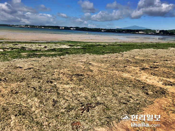[한라일보] 제주 해안이 또다시 등장한 '바다의 물청객'으로 몸살을 앓고 있다. 괭생이모자반이 사라진 자리에 구멍갈파래가 대거 밀려들어오면서이다. 행정당국은 '파래제거지원사업' 등을 벌이며 대책을 마련하고 있지만, 해수욕장 개장 한 달도 채 되지 않아 해안과 백사장이 점령당하며 고민이 깊어지고 있다.