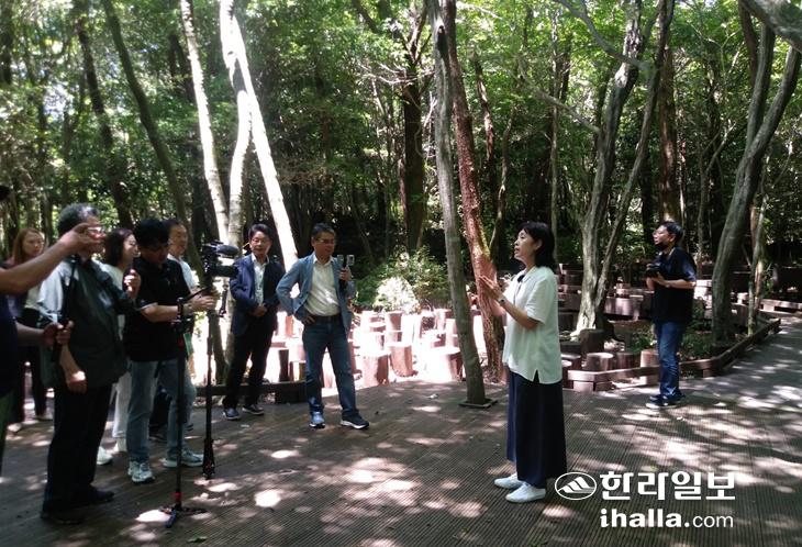 30일 서귀포 치유의 숲에서 무장애나눔길 현장 브리핑이 진행되고 있다. 진선희기자
