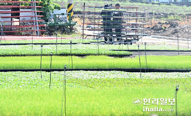 [한라일보] 지난 3일 제주시 한림읍 수원리의 한 종묘장에 파종을 앞둔 모종들이 무더운 날씨속에서도 무럭무럭 자라고 있다. 강희만기자
