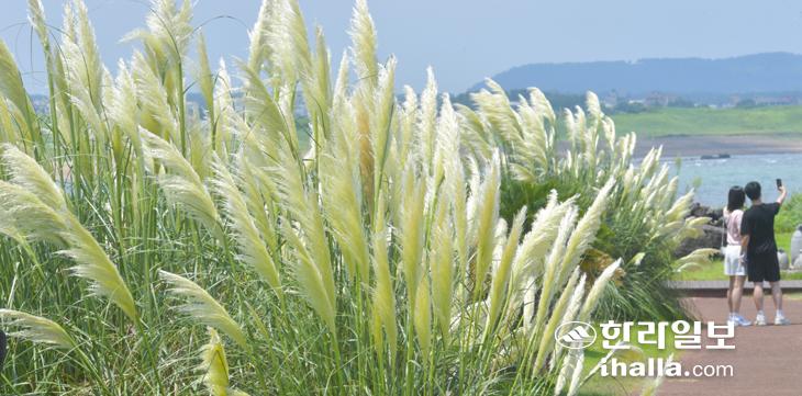 [한라일보] 5일 서귀포시 섭지코지에 많은 관광객들이 찾는 가운데 팜파스그라스가 시선을 사로잡고 있다. 이상국기자