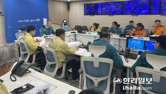 제주자치도가 6일 오후 진명기 행정부지사 주재로 '폭염대책 전담팀 3차 긴급점검회의'를 개최하고 있다. 제주자치도 제공