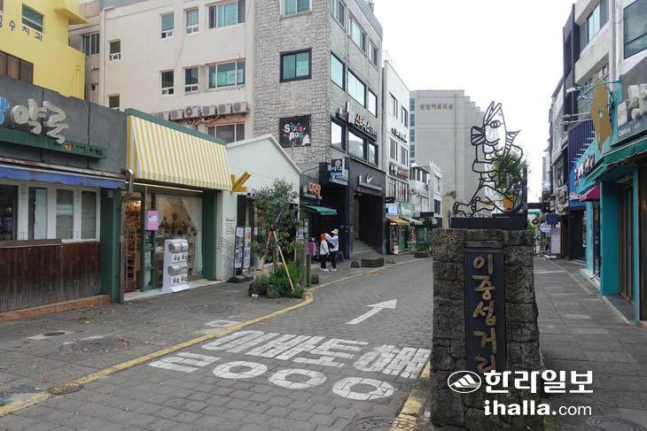 ▶목마른 상인들이 우물 파듯 차량 통제하고 정기 이벤트=이중섭거리·명동로 상가는 180여 개 점포가 2만7000㎡의 면적에 분포한 서귀포의 주요 상점가다. 이 일대는 '명동로·이중섭거리'란 명칭의 특화거리로 불린다. '제주특별자치도 특화거리 등 골목상권 활성화 지원 조례' 제정 이전에 이중섭거리가 있었다. 이중섭거리 등 제주 지역 9개 특화거리 대부분이 조례보다 앞서 조성됐는데 일반적 경과 조치에 따라 해당 조례에 의한 것으로 본다. 조례상 특화거리는 "다른 지역과 차별화될 수 있는 각 지역마다의 특화된 공간(상가, 거리)으로 지역 경제 활성화 등 특정 목적을 위해 지정된 구역"을 일컫는다.