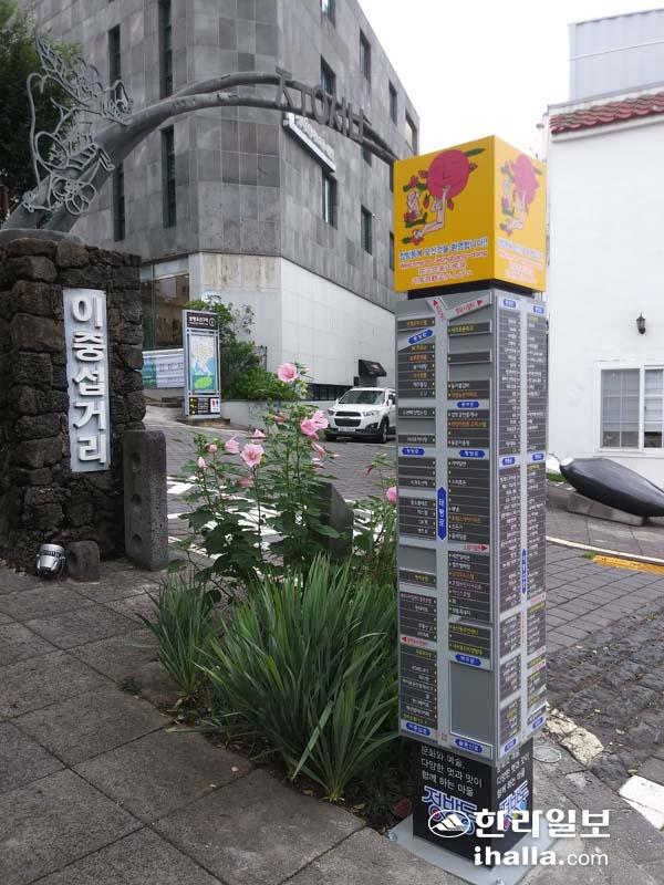 정방동에서 이중섭거리 남측 맨 끝에 상가 안내판을 세웠다.