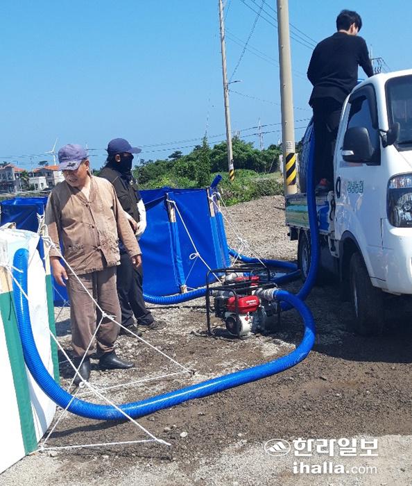 제주시가 구좌읍 농가에 농업용수를 공급하고 있다. 제주시 제공