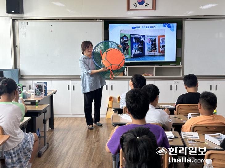 한라일보 주관으로 진행된 이번 교육은 '2024 찾아가는 독도 해녀 교실' 2회차로 지난달 23일 애월초등학교(교장 고충희) 4학년 학생들을 대상으로 진행됐다.