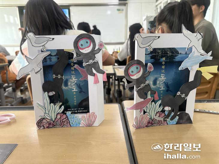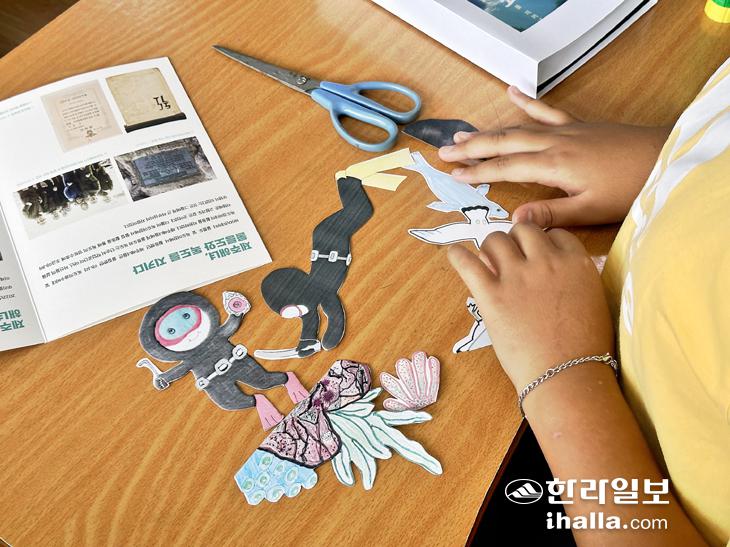 이후 책 속의 이야기가 된 독도 해녀의 이야기를 "독도 해녀분들의 노고와 헌신을 잊지 않고 가슴속에 깊이 새기자"며 평면을 입체로, 역사를 실제로 느껴보는 팝업북 만들기 체험을 진행하는 시간도 가졌다.