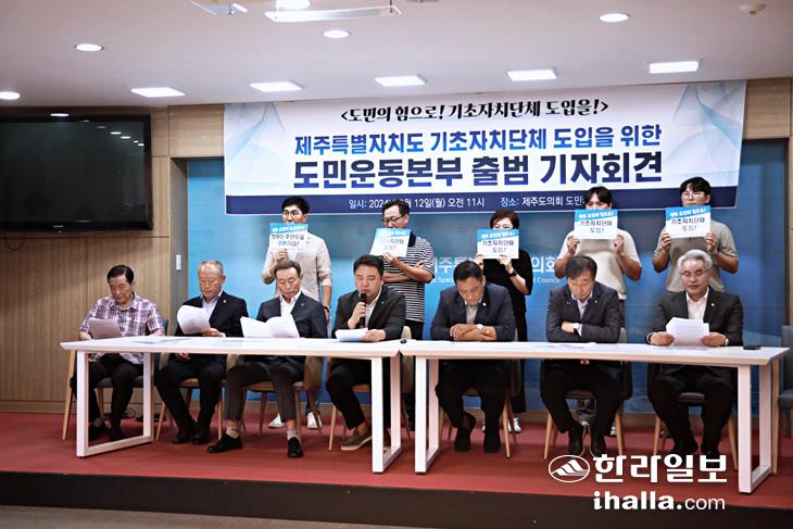 제주도새마을회를 비롯한 도내 26개 단체는 12일 제주도의회 도민카페에서 제주도 기초자치단체 도입을 위한 도민운동본부 출범 기자회견을 열었다.