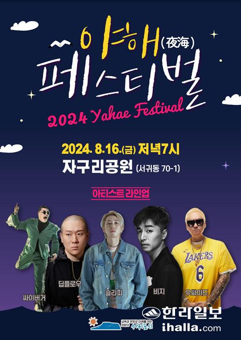 [한라일보] 제주 서귀포의 여름 밤바다를 배경으로 젊은 세대들과 함께하는 축제가 펼쳐진다. 16일 오후 7시부터 9시까지 자구리공원에서 진행되는 '2024 야해(夜海) 페스티벌'이다.