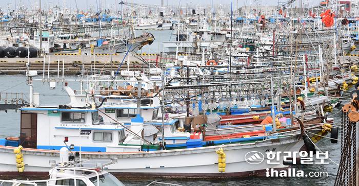제9호 태풍 '종다리'가 다가오면서 20일 오전 성산포항에 많은 어선들이 피항해 있다. 이상국 기자
