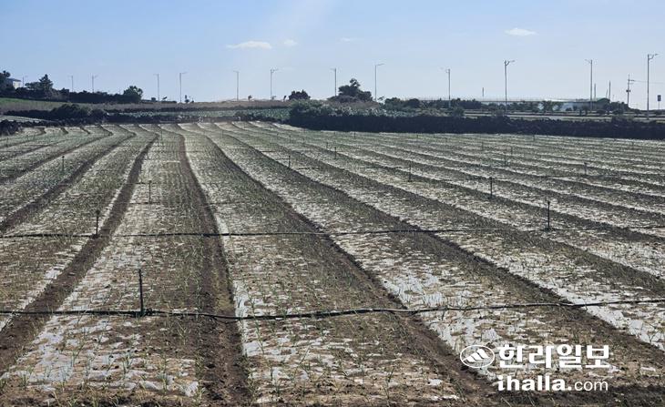 대정읍은 제주 마늘 생산량의 약 80%를 차지하는 등 도내 대표적인 마늘 주산지로 꼽힌다. 하지만 잦은 비 날씨 등 기후 변화 영향으로 전체 재배 면적(806㏊)의 절반 이상에서 상품성이 떨어지는 2차 생장(벌마늘)이 발생하는 등 농업인들이 피해를 입었다. 실제 지난 5월 대정읍에서 벌마늘 피해 신청을 받은 결과 총 660농가(374㏊)가 접수했다.