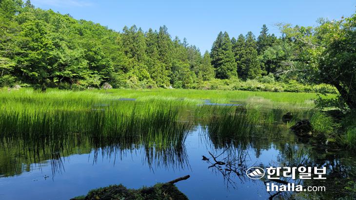 노로오름의 지명 기원이 된 숨은물벵듸, 둘레 약 2.5㎞로 국내 최대 산지습지다. 김찬수