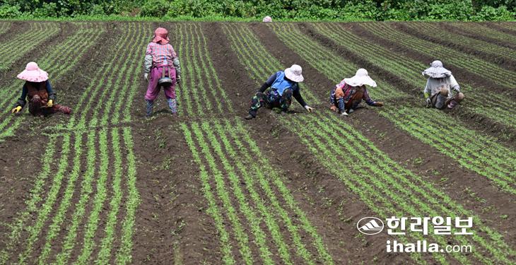 [한라일보] 2일 제주시 구좌읍 송당리 한 농경지에서 농민들이 김매기작업을 하고 있다. 강희만기자
