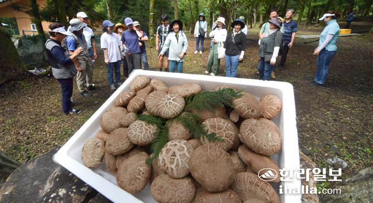 [한라일보] 8일 한라산에 위치한 한 표고농장에서 제주도 지원사업인 '표고길 걷기 및 농장투어'가 진행되고 있다. 이상국기자