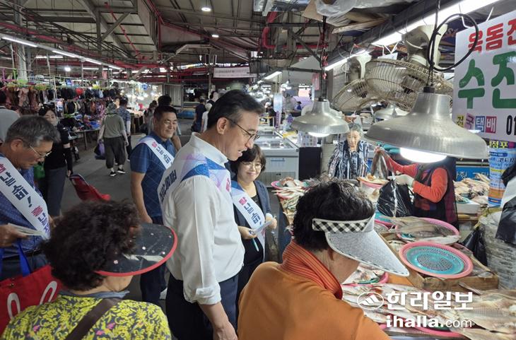 오순문 서귀포시장은 서귀포향토오일시장을 찾아 상인, 시민들과 소통하는 시간을 가졌다.