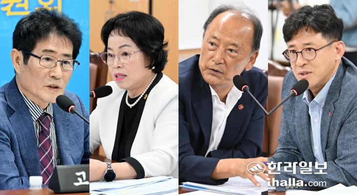 사진 왼쪽부터 제주자치도의회 문화관광체육위원회 고태민 위원장과 원화자, 강연호, 양영수 의원. 제주도의회 제공