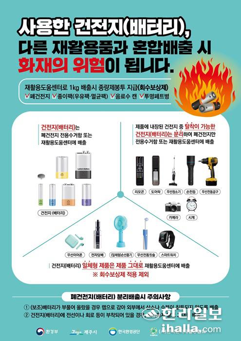 "배터리 화재 막자"…제주시, 폐건전지 분리배출 당부